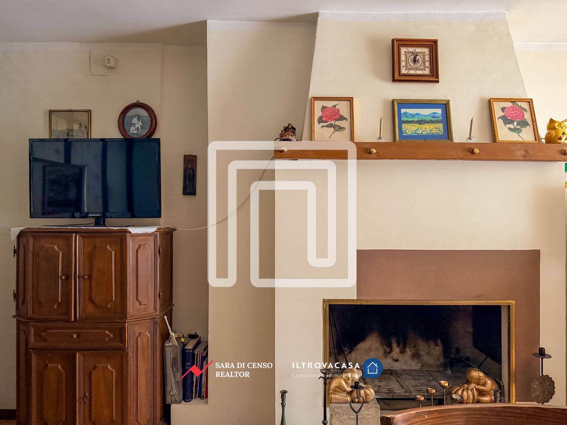 Al piano terra troviamo una cantina con un piccolo bagno di servizio; al piano primo soggiorno con camino, angolo cottura, balconcino, camera da letto con bagno;