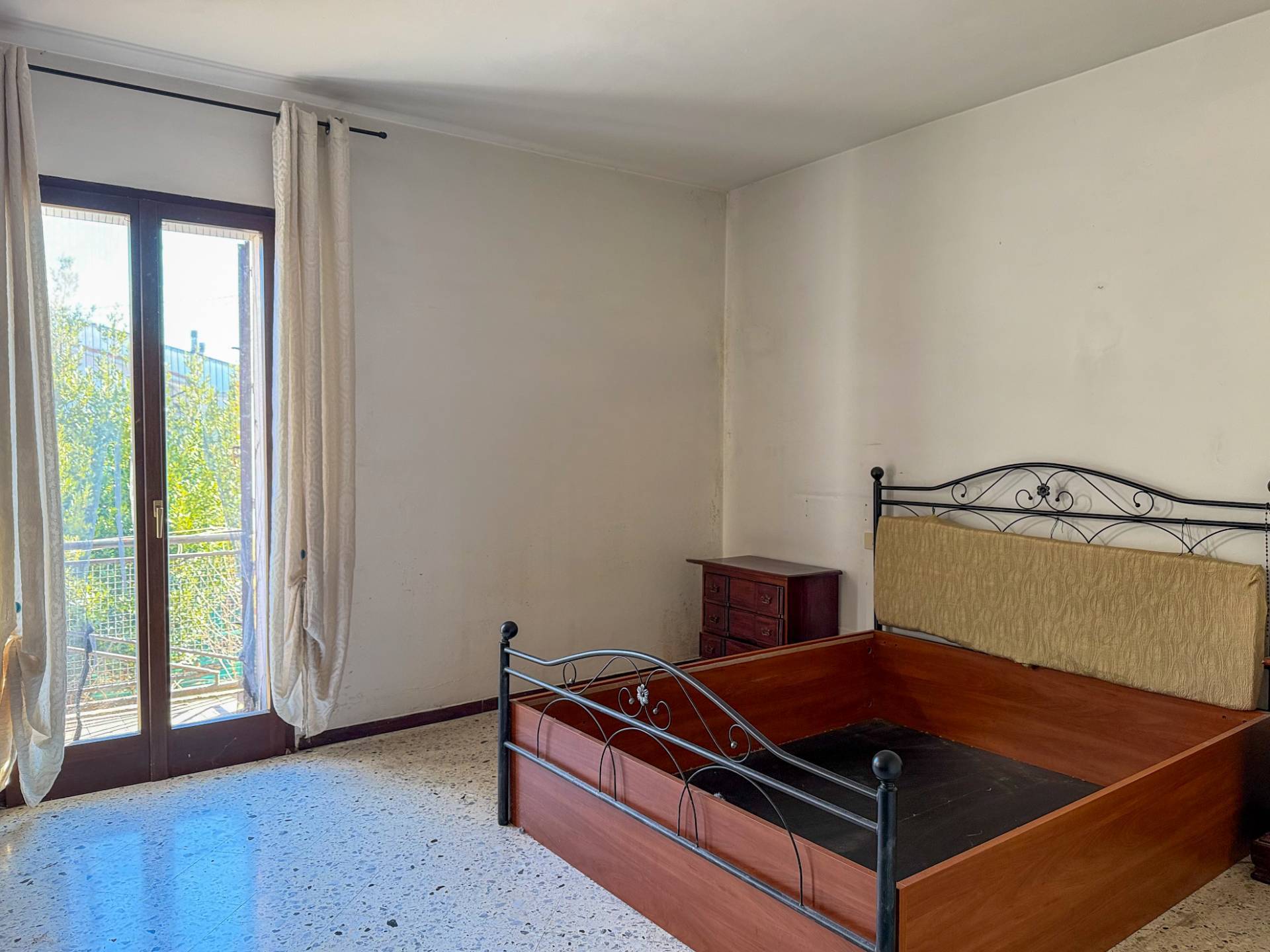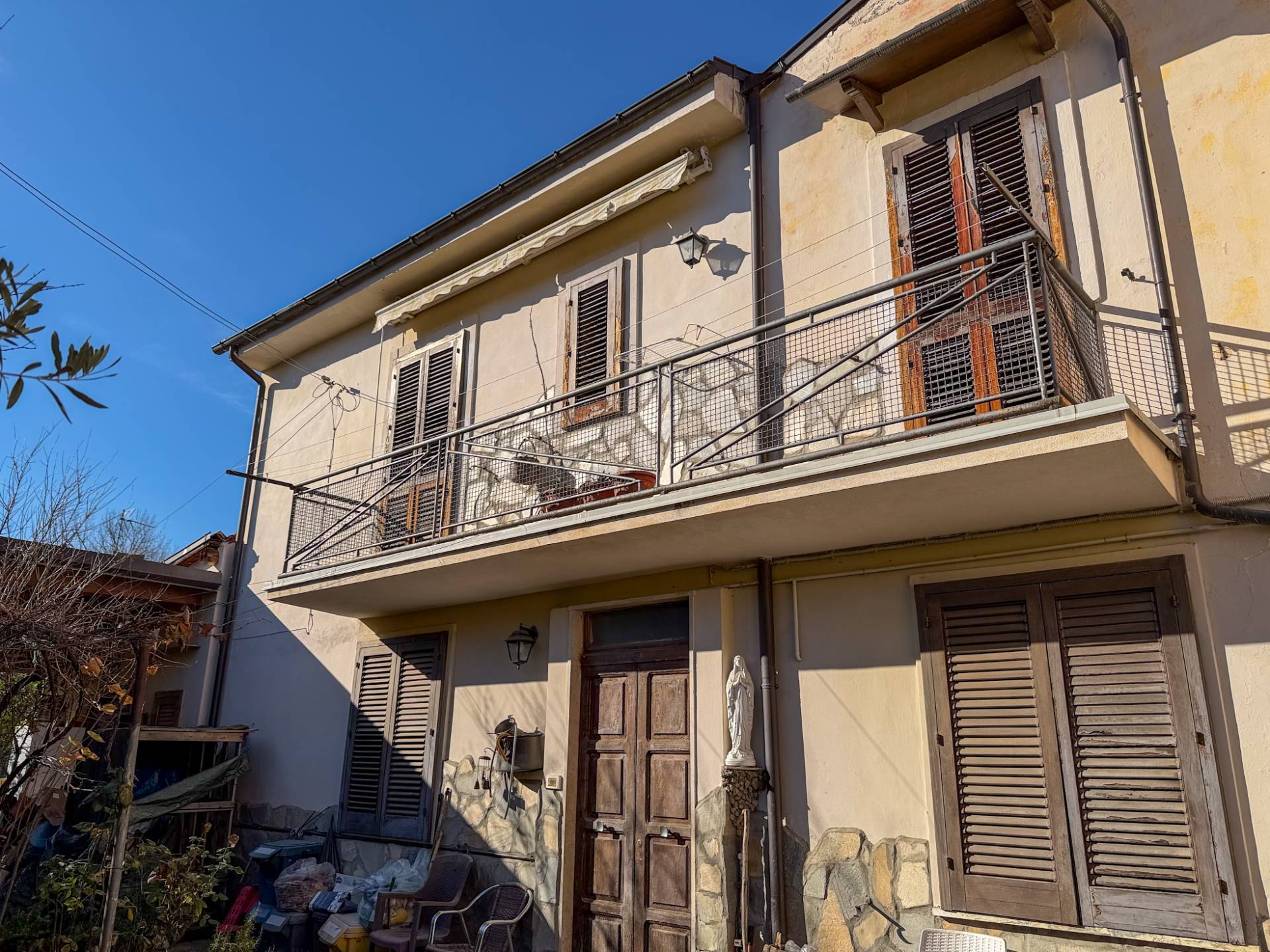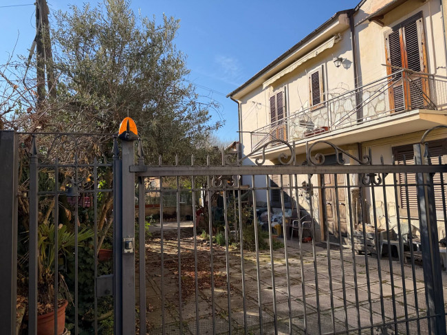 L’accesso avviene tramite un piccolo vialetto comune che conduce all’ingresso della proprietà privata. Qui si apre una corte esterna accogliente, in gran parte pavimentata, ma arricchita da spazi verdi ben curati, con diverse piante ornamentali, un suggestivo pergolato di vite e una splendida pianta di ulivo, che conferiscono carattere e atmosfera all’abitazione.
