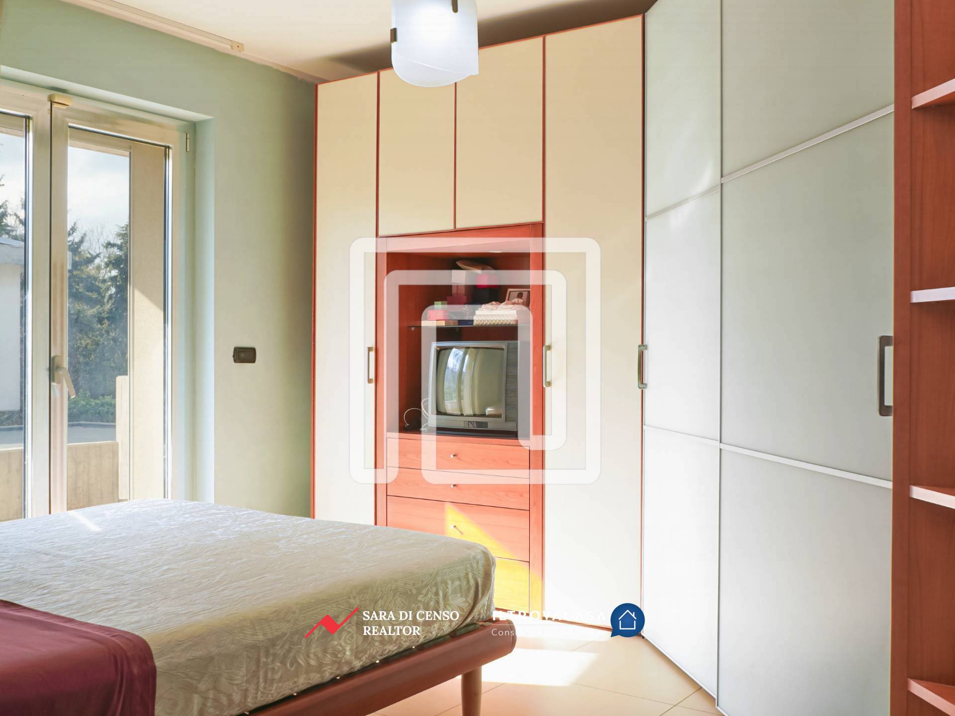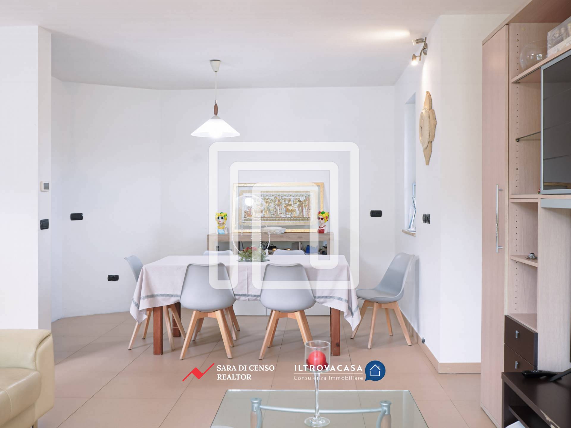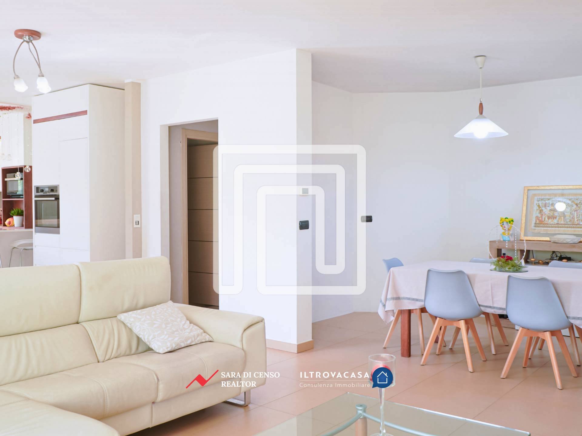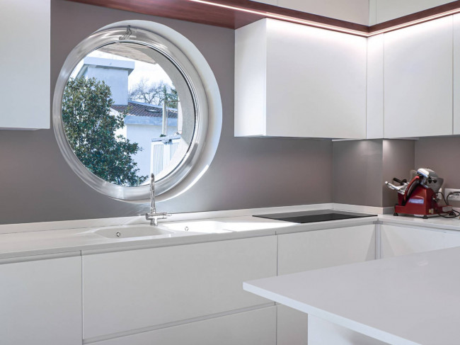 L’accesso principale avviene dal giardino, di circa 400 mq: attraversando un ampio patio pavimentato si entra nella zona giorno, ampia e luminosa, caratterizzata da un ambiente relax con grande spazio per la zona TV. In continuità si apre la zona living dedicata a pranzi e cene, mentre la cucina abitabile dialoga con l’esterno attraverso un’estesa vetrata affacciata sul verde, valorizzata anche da un particolare oblò che regala ulteriore luce e prospettiva. L’intera zona giorno, di circa 50 mq, è esposta a sud: questo garantisce luminosità per gran parte della giornata e permette di sfruttare l’irraggiamento solare, riducendo l’utilizzo del riscaldamento durante l’inverno.
