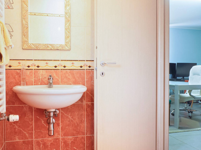 Una comoda scala interna conduce al piano seminterrato, di circa 147 mq, che dispone anche di ingresso autonomo. All’esterno troviamo una corte di circa 220 mq con accesso carrabile tramite cancello, dove è possibile parcheggiare comodamente fino a quattro auto. Il piano seminterrato ospita un ampio garage di circa 51 mq con cantina adiacente di circa 24,40 mq, oltre a una taverna attualmente adibita a studio con bagno, di circa 40 mq, collegata internamente anche al piano superiore.