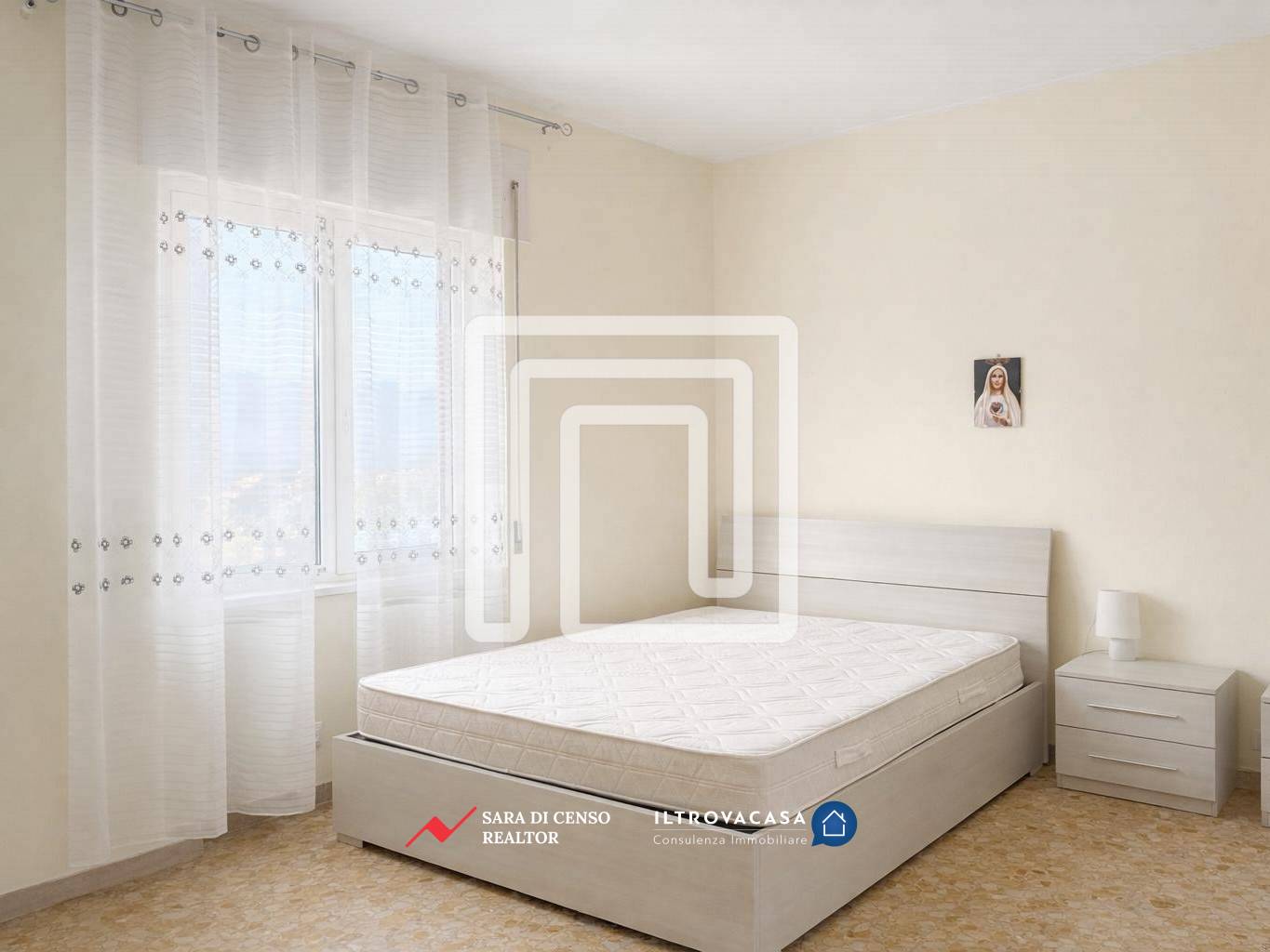 L’abitazione è composta da ingresso, salone, cucina separata e due camere da letto, oltre a un bagno. Gli ambienti sono ben distribuiti e offrono spazi comodi e funzionali per la vita quotidiana.